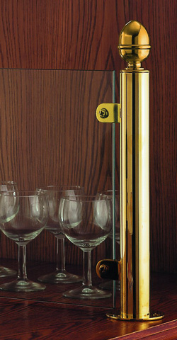 38mm screen pillar for 6mm or 10mm panels. 38mm diameter stem on 75mm diameter base. Supplied as end, centre or corner. Heights 300mm, 450mm, 600mm or other heights to order. Polished Brass. Chrome. Satin Chrome.