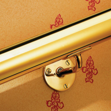Cranked handrail bracket with saddle top for 38mm tube or 51mm 78mm centreline projection. 63mm diameter fixing plate. Polished Brass. Satin Chrome.